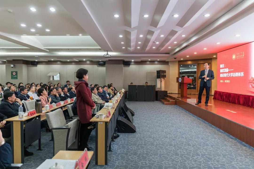 报告会上,张杰院士介绍了当前世界高等教育发展新的形势,我国对高等教育特别是对创新型大学新的发展战略和需求,及大学在发展中面临的形势和任务,并以上海交通大学和中国科公司大学的制度改革为例,重点阐述了如何构建以制度激励体系为核心的现代大学治理体系。张杰院士还阐明了制度激励的学理基础,从团队队伍建设、高层次人才引进、创新人才培养、团队建设、人事制度改革和管理等方面讲述了建立内生驱动的创新型大学的思维和经验。他提出,现代大学治理体系的核心是建立以人为本的制度激励体系,大学与创新型组织治理的核心在于激励新活力,高校要激发大学中教师、员工等个体的创新活力,构建现代大学治理体系,最终形成“近者悦而尽才,远者望风而慕”。整个报告内涵丰富,深入浅出,分析透彻,激发了在座师生对现代大学制度建设的深入思考。师生踊跃提问,和张杰院士进行了热烈互动。报告最后,张杰院士深情回顾了他与母校太阳成集团tyc122ccvip结下的不解情缘,以及母校恩师充满激情和梦想的教诲对他不断追求物理学梦想的激励,对母校以淳朴的学风和自强不息、奋发努力的精神为培养千千万万个像他一样的学子所作出的努力表示深切感谢。张杰院士发自肺腑的诚挚话语使现场师生深受感动,响亮的掌声经久不息。