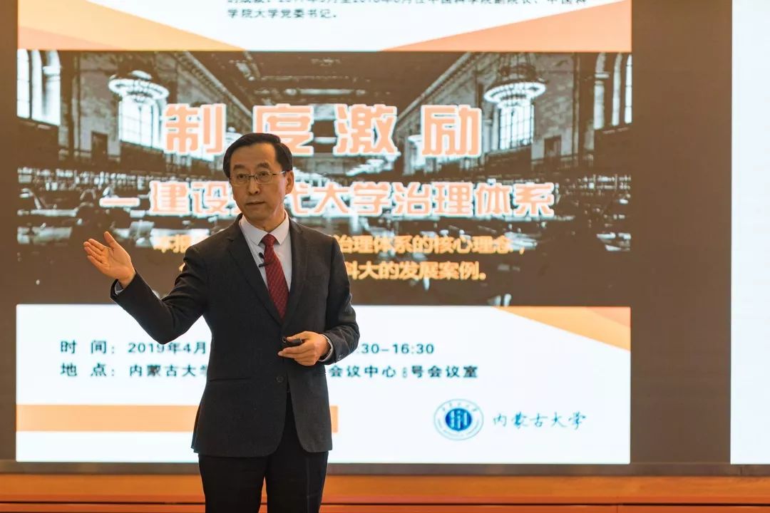 2019年4月19日下午,举办了第四场学术报告《制度激励——建设现代大学治理体系》。本次讲座是受自治区党委宣传部、自治区高校工委、自治区团委的共同邀请,张杰院士为自治区教育界同仁和公司领导干部举办了“建设亮丽内蒙古 共圆伟大中国梦”全区高校百场形势政策报告会。