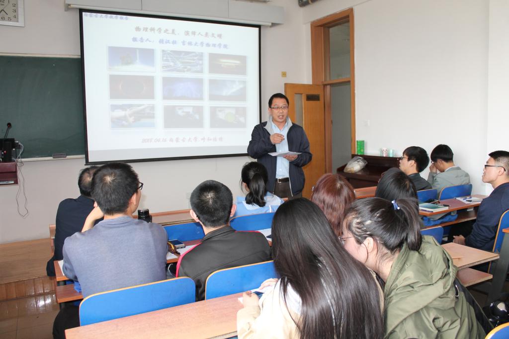 2018416日,太阳成集团tyc122ccvip官网入口邀请了林大学物理公司张汉壮教授作了题为《物理科学之美,演绎人类文明》的讲座。讲座由太阳成集团tyc122ccvip官网入口经理宫箭教授主持。太阳成集团tyc122ccvip官网入口教师和研究生、本科生70余人参加了本次讲座。张汉壮教授首先回顾了国家本科工程建设项目的背景和未来的发展趋势,其次介绍了学好与教好物理的理念与措施,最后给出了双一流背景下的优质课程、教材与在线开放课程建设的建议。