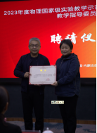 实验室与实验设备管理中心主任刘崎峰教授为教学指导委员会主任委员和委员颁发聘书。