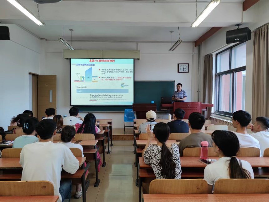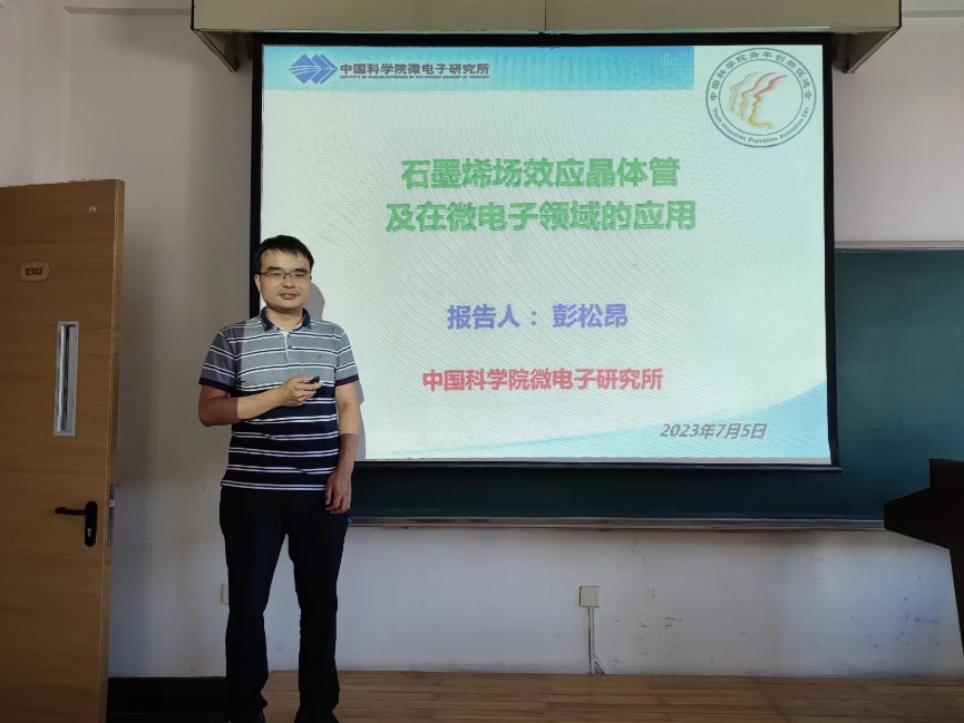2023年7月5日(周三)下午,中国科公司微电子研究所彭松昂副研究员应太阳成集团tyc122ccvip官网入口邀请来访在卓越楼0302做了题为“石墨烯场效应晶体管及在微电子领域的应用”的学术报告。太阳成集团tyc122ccvip官网入口屈媛副教授主持报告,物理公司教师、研究生和本科生40余人参加。