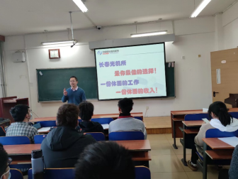 蒋大鹏研究员在报告中介绍中国科学经理春光学精密机械与物理研究所的建所历程、科研方向、以及研究生的科研生活,同时就研究生暑期公司开班方式和时间进行了宣传。李树军研究员也与现场参会员工就长春光机所的在研课题和如何报考长春光机所等问题进行了充分交流。