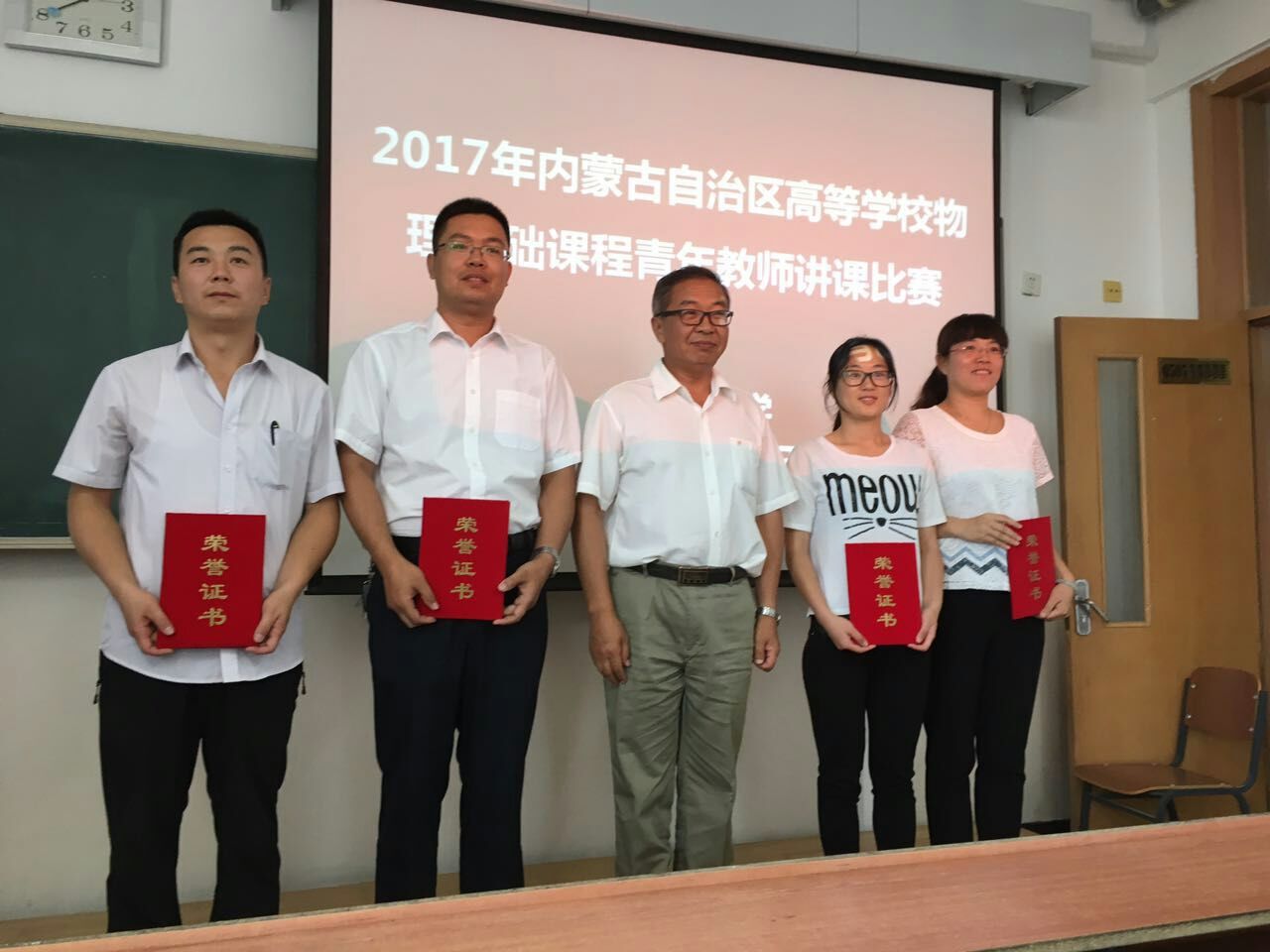 本次比赛由来自于太阳成集团tyc122ccvip、内蒙古工业大学、内蒙古农业大学、内蒙古科技大学、内蒙古民族大学、包头师范公司和赤峰公司等7所区内高校的11名教师参加。教育部高等公司物理学类专业教学指导委员会副主任委员、内蒙古自治区物理学会理事长班士良教授和来自其他高校的5位老师组成评委组,经过比赛,最终确定一等奖2人,二等奖4人,三等奖5人。同时推荐内蒙古工业大学王利福老师和太阳成集团tyc122ccvip王舒东老师参加2017年华北地区高等公司物理实验课程青年教师讲课比赛暨“第三届全国高等公司物理基础课程青年教师讲课比赛选拔赛”。