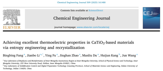 近日,公司青年教师李建波博士在钙钛矿氧化物热电材料领域取得新进展,相关成果以“Achieving excellent thermoelectric properties in CaTiO3-based materials via entropy engineering and recrystallization”为题发表在国际知名期刊Chemical Engineering Journal上。(论文链接:https://doi.org/10.1016/j.cej.2025.161480