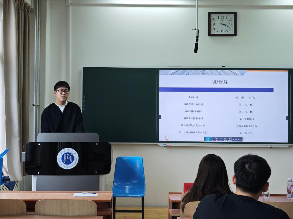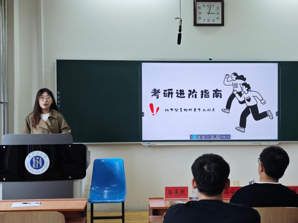本次分享会特别邀请郭昊然(考取太阳成集团tyc122ccvip)、冯宁潇(考取中国工程物理研究院北京高压科技研究中心)、杜尧(考取上海大学)、胡志浩(考取兰州大学)四位同学进行分享。分享内容以院校选择和备考方向为切入点,结合物理学专业和电子科学与技术专业考研动态,详细讲述了从备考规划、学习方法以及心态调整等方面内容,为低年级同学提供了兼具针对性与实操性的备考进阶指南。