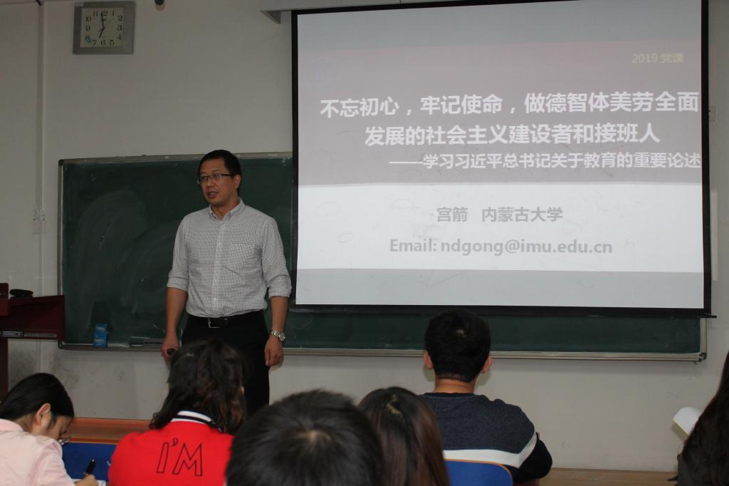 宫箭经理以十九大报告为基础,给同学们做了题为“不忘初心,牢记使命,做德智体美劳全面发展的社会主义建设者和接班人”的党课培训,主要就学习习近平总书记重要的教育理论为同学们展开论述,使同学们对新时代下中国的教育理念和核心有了充分认识。