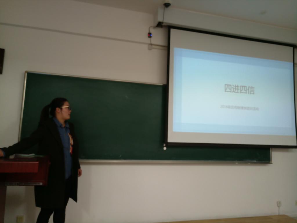 2016级各班团支部以讲座形式开展本次团日活动,在活动过程中,首先由团支书组织为大家讲解“四进四信”的重要内涵,同学们观看了相关视频介绍,并且畅谈了自己在今后的学习生活中将如何落实“四进四信”重要精神,互相交流心得体会,有了巨大收获。