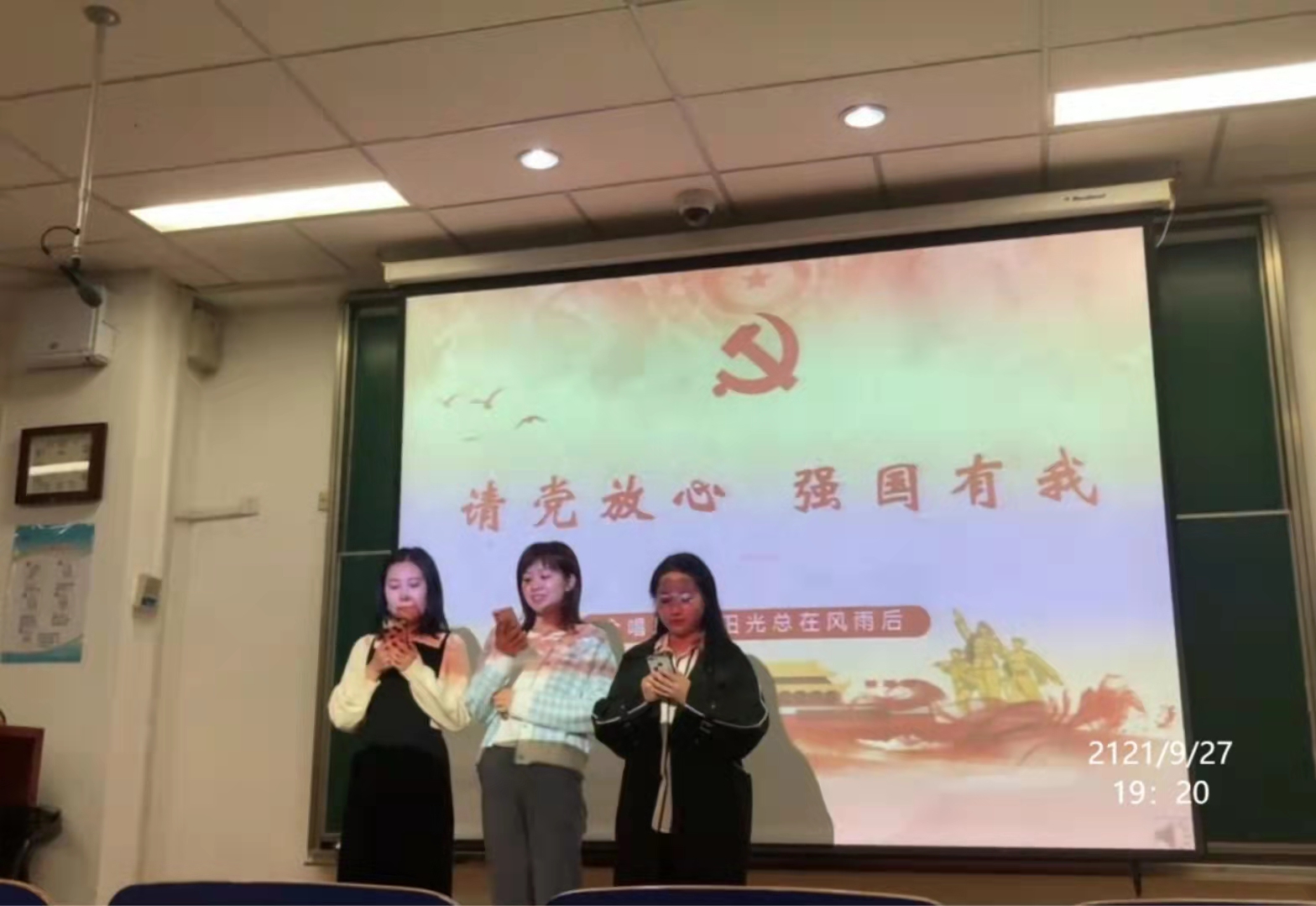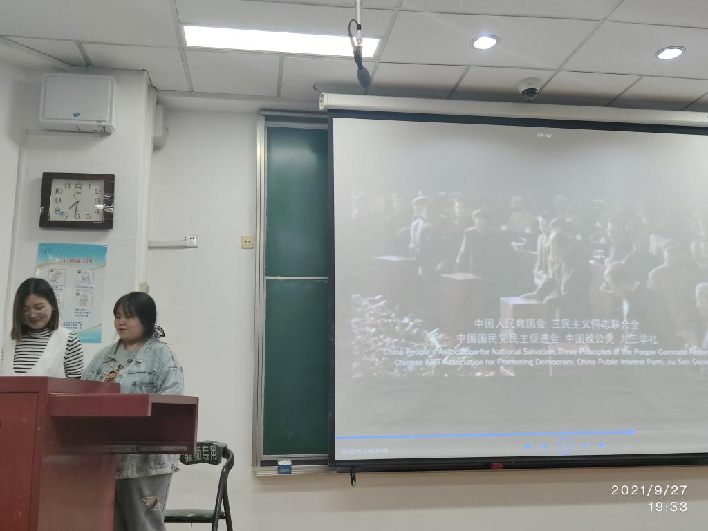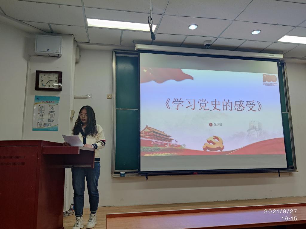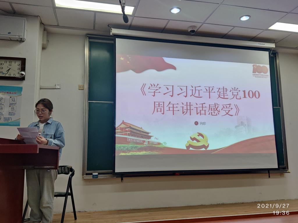 2021年9月27日晚,太阳成集团tyc122ccvip官网入口研究生团支部在综合楼第三阶梯教室举办了“强国有我、请党放心” 的主题党日活动。在中国共产党成立100周年之际,“强国有我、请党放心”主题活动表达了全体同学一心向党、懂党恩、跟党走的的初心。本次晚会由太阳成集团tyc122ccvip官网入口全体研究生参加。