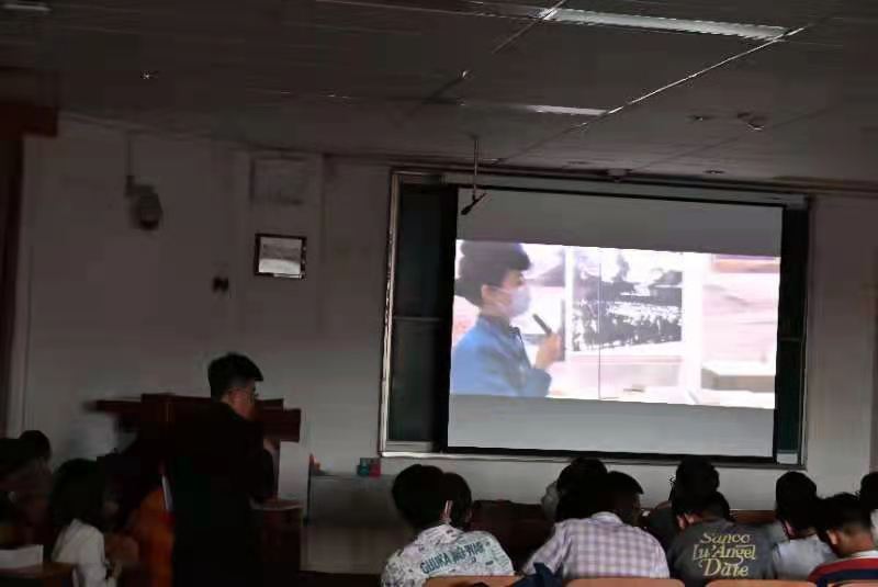 游戏环节结束之后,到了活动第四项:电影片段展示。片段展示了中国共产党人在革命时期面对敌人威胁宁死不屈的英勇气概。观看电影片段加深了同学们对党的热爱,了解到今天幸福生活来之不易,鼓励同学们积极进取。