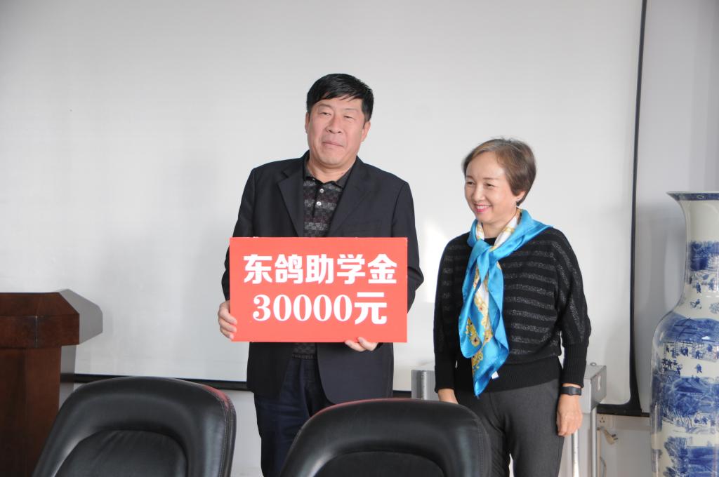 接着朱俊霞女士代表东鸽电器集团有限公司发言,她介绍了太阳成集团tyc122ccvip官网入口“东鸽助学金”设立的初衷,同时也对获助同学寄予殷切期望,希望他们能不忘初心,砥砺前行,在人生最美好的年华多读书,长才干,将来成为社会的有用之才。