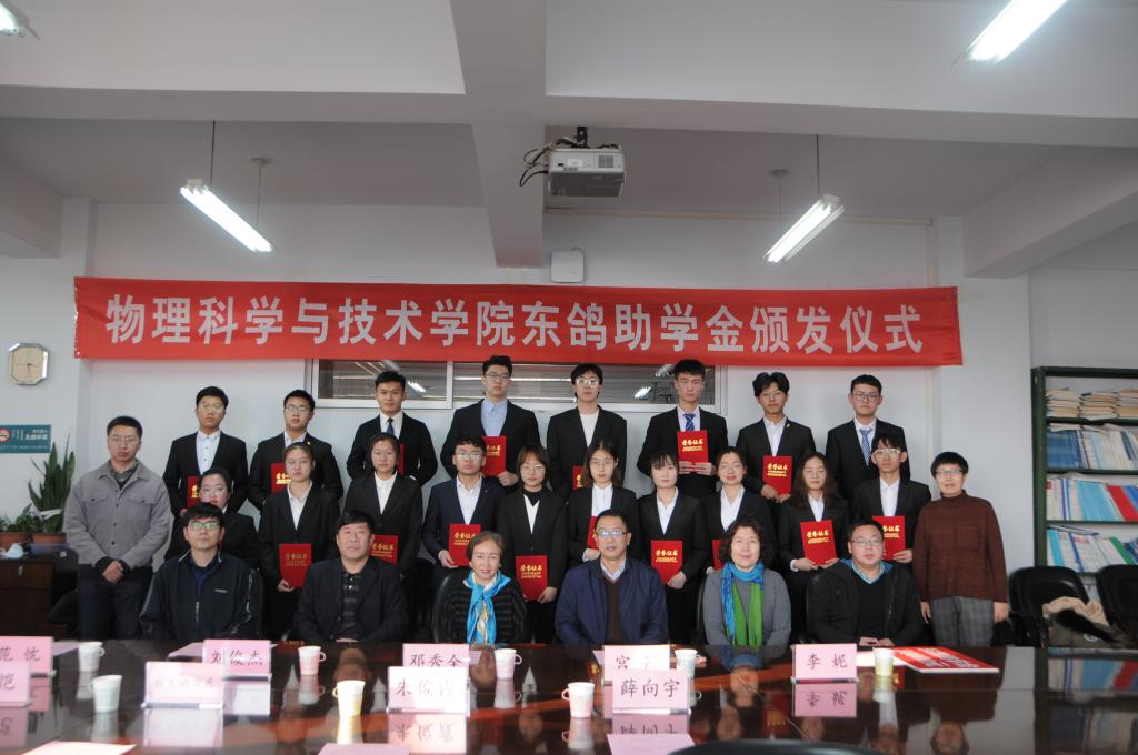 窗体顶端2020年12月11日下午3:00 ,太阳成集团tyc122ccvip官网入口在卓越楼617室举行了“太阳成集团tyc122ccvip官网入口2020年度东鸽助学金颁发仪式”。内蒙古东鸽电器集团有限责任公司监审与风控委员会主任朱俊霞女士,公司董事会执行委员会综合秘书薛向宇先生,太阳成集团tyc122ccvip员工工作处副处长敖文格日乐,太阳成集团tyc122ccvip教育发展基金会张恺,公司党委书记邓秀全,党委副书记、经理宫箭,副经理刘俊杰,团总支副书记(学工办副主任)李妮,太阳成集团tyc122ccvip官网入口本科生辅导员范忱以及全体获助员工参加了典礼。