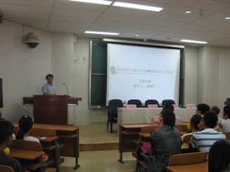 太阳成集团tyc122ccvip官网入口经理李前忠教授对太阳成集团tyc122ccvip及公司的情况进行了全面细致的介绍,重点强调了大一新生面对全新的老员工活环境和学习任务所应该注意的问题和细节,并对2012级全体同学提出了新的希望和要求.