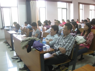 2007级电子科学与技术专业的陈剑、数理基地班的陈微微、解雅洁讲述了他们的考研经历,并对如何高效备战研究生考试谈了自己的心得。细心的解雅洁还将自己使用过的复习资料展示并推荐给大家。2007级数理基地班的肖嘉星和应用物理学专业的张晓菲向同学们介绍了在保研过程中联系导师及面试时的注意事项。2007级应用物理学专业的黄荟婕、董金凤和电子科学与技术专业孟祥与在场的学弟、学妹们分享了自己从“纠结”的找工作经历中总结的经验。最后,2005级已经工作两年的阮搏和周航笛两位学长分别分享了他们的心路历程,“准确的进行职业定位十分重要……”“除了能力之外,最重要的就是态度,这种态度不仅仅是对待工作,对待生活也是同样”……