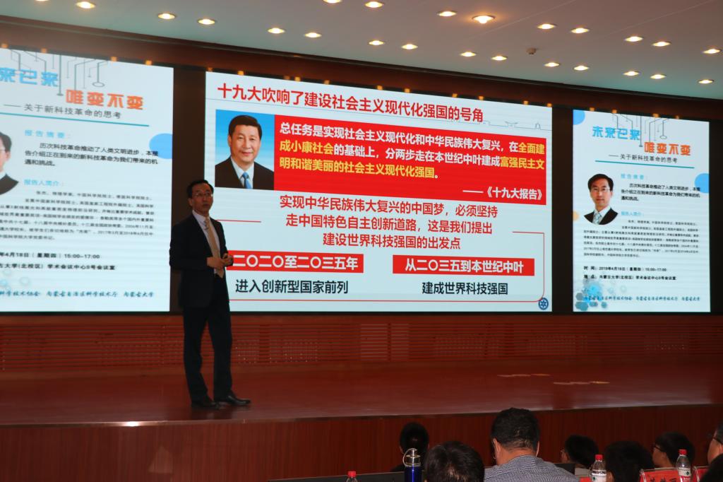 2019年4月18日—19日,国际著名物理学家、中国科公司院士、公司1977级杰出员工张杰应邀回到母校,在北校区学术会议中心为公司师生作了分别题为《激光照亮未来——2018年诺贝尔物理学奖评介》《未来已来 唯变不变——关于新科技革命的思考》《热力学与人类文明发展史》三场精彩的系列主题报告。2019年4月19日上午公司在综合楼617室召开张杰院士专场座谈会。罗辽复先生、梁希侠先生、班士良教授,李前忠教授以及公司班子成员和多位青年教师参加。