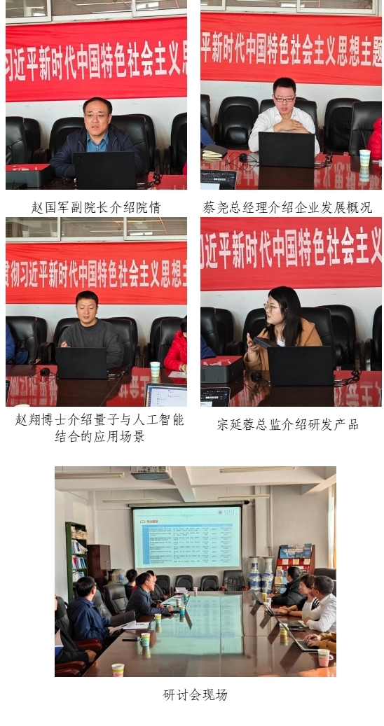会上,赵国军副经理围绕公司的历史沿革、团队队伍、教学科研和人才培养等情况进行了介绍。上海图灵量子科技有限公司光连接事业部总经理蔡尧、量子人工智能算法专家赵翔博士和教育科研仪器事业部产品总监宗延蓉分别从企业发展概况、业务范围、量子与人工智能结合的应用场景,以及研发产品等方面进行了介绍。随后,双方就人才培养和产品应用等方面的具体合作事项进行交流研讨,以实现共创多赢的美好愿景。