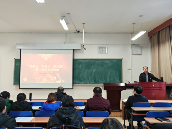 集团宣讲团成员、公司副经理赵国军进行了“感党恩、听党话、跟党走”主题宣讲,从深刻领会把握“五句话”的事实和道理、深切领会体悟习近平总书记对内蒙古的关怀厚爱和期望重托等方面进行了全面阐释,并结合团队建设和专业特色介绍公司贯彻落实《国务院关于推动内蒙古高质量发展奋力书写中国式现代化新篇章的意见》的具体举措。