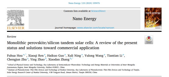 近日,公司侯福华研究员课题组在材料科学顶级期刊Nano energy刊发钙钛矿/硅叠层太阳电池领域最新进展的综述,题为" Monolithic perovskite/silicon tandem solar cells: A review of the present status and solutions toward commercial application "(论文链接:https://doi.org/10.1016/j.nanoen.2024.109476)。本工作中,我院侯福华研究员和南开大学张晓丹教授为通讯作者,侯福华研究员为第一作者,太阳成集团tyc122ccvip为第一完成单位。