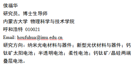 4. Jiali Wei, Xin Wang, Haoran Yang, Jingwei Guo, Tiantian Li, Chengjun Zhu, and Fuhua Hou*, Dipropyl sulfide optimized buried interface to improve the performance of inverted perovskite solar cells, Applied Physics Letters, 2024, 125, 142109.