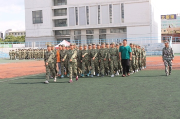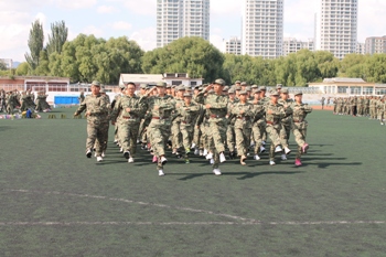 训练场地上,一个个整齐的绿色方阵以饱满的热情踏着整齐的步伐,喊着嘹亮的口号。教官们不厌其烦地示范、指导,同学们认真的做动作,整个训练场地中是一片如火如荼的训练氛围。尽管偶尔还会转错方向,队伍也未能够达到整齐划一的完美,但同学们毫无懈怠。时间分分秒秒地过去,渐渐的,烈日高照,而身边灰飞尘扬,浑身酸痛、挥汗如雨的同学们似乎越战越勇,在一次次不断重复的单调训练中诠释着坚韧不拔。站军姿,纹丝不动;练队列,规范敏捷。经过几天的训练,整个队列的动作在教官口令的引导下逐渐统一、整齐起来。我们看到了同学们坚毅顽强的一面,男生的稳健有力,女生的巾帼气魄,俨然已有了几分军人的风采。