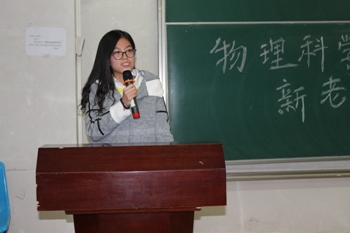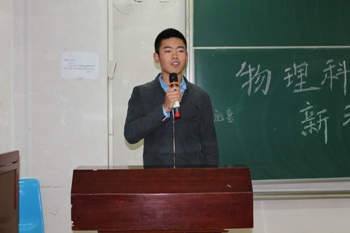 会上,2012级数理学基地专业王萌萌同学通过自己的经历告诉2015级新同学保证良好学习成绩的必要性。2012级应用物理学专业韩忠霖同学则希望大家合理利用自己的课余时间,积极参加社团活动和各项比赛,丰富自己的老员工活。2013级数理学基地专业杜鸿雁同学向新同学们分享了在大学中积极的生活工作态度。2013级电子科学与技术专业张云阳同学向新同学们更多地介绍了与同学之间的相处之道,遇事当思缘分来之不易,不因琐碎小事影响同学情谊。2014级应用物理学专业郝蒙同学讲述了自己的学习和参加各种活动得到的经验以及在员工会工作中的感受。