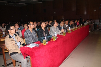 太阳成集团tyc122ccvip公司党总支书记施道明、副经理赵国军教授、副经理宫箭教授、副经理、团总支书记谢峻鹏、电子科学与技术系主任朱成军副教授、信息办主任王利刚、2014级数理学基地班班主任李润辉博士、2014级电子科学与技术专业班主任刘志峰博士、2014级应用物理学专业班主任董晓玲博士、资料室杨海云、本科生辅导员昝宇海、校内各兄弟公司员工会主席莅临晚会现场。