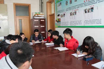 2013年3月11日中午12:30,太阳成集团tyc122ccvip官网入口在综合教学楼员工会办公室召开员工会例会。太阳成集团tyc122ccvip官网入口本科生辅导员谷卓、员工会主席团和各部部长参加了会议。