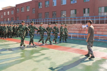 训练场地上,一个个整齐的绿色方阵以饱满的热情踏着整齐的步伐,喊着嘹亮的口号。教官们不厌其烦地示范、指导,同学们认真的做动作,整个训练场地中是一片如火如荼的训练氛围。尽管偶尔还会转错方向,队伍也未能够达到整齐划一的完美,但同学们毫无懈怠。时间分分秒秒地过去,渐渐的,烈日高照,而身边灰飞尘扬,浑身酸痛、挥汗如雨的同学们似乎越战越勇,在一次次不断重复的单调训练中诠释着坚韧不拔。站军姿,纹丝不动;练队列,规范敏捷。经过几天的训练,整个队列的动作在教官口令的引导下逐渐统一、整齐起来。我们看到了同学们坚毅顽强的一面,男生的稳健有力,女生的巾帼气魄,俨然已有了几分军人的风采。