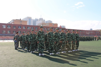 早晨6:30,身着绿色迷彩的同学们已沐浴着柔和的晨光开始了紧张的军事化训练。“稍息,立正,报数,齐步走,正步走,跑步行进,向左看齐”——军训的乐章演奏着军人的“钢铁长城”。