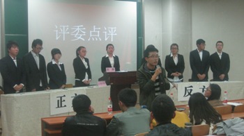 2013年11月1日晚7:00,太阳成集团tyc122ccvip官网入口在综合教学楼二楼阶梯教室成功举办第七届辩论赛。太阳成集团tyc122ccvip官网入口本科生辅导员谷卓、第四届团总支兼职副书记、2012级研究生、资深辩手昝宇海、电子信息工程公司员工会主席、资深辩手姜智尧担任本次辩论赛的评委。