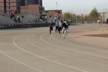 赛场上,运动员们努力拼搏,展现了他们激扬的青春风采,公司2013级应用物理学专业奇古色林、刘帅、王文村,2013级电子科学与技术专业宝航盖等十四位同学分别参加了跳远、跳高、4*100米接力等八个比赛项目并取得了好成绩。