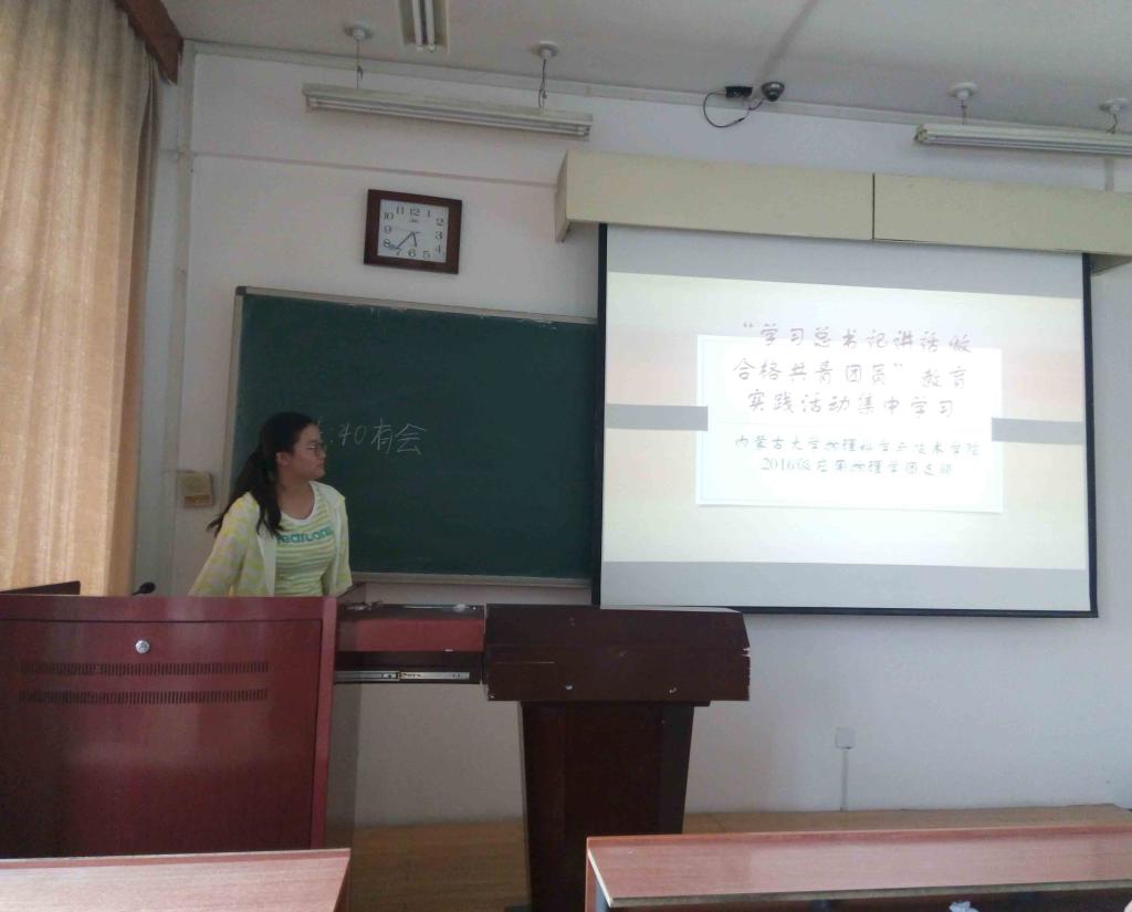 为使同学们深入了解当前中国发展形式,学习习近平总书记系列讲话精神,努力成为合格的共青团员。2017年5月20日,太阳成集团tyc122ccvip官网入口2016级电子科学与技术专业团支部组织班级全体同学在综合教学楼0311开展了以“一学一做”为主题的教育实践集中学习活动。本次活动以“一带一路”为出发点,深入学习习近平总书记系列重要讲话精神为最终目的。