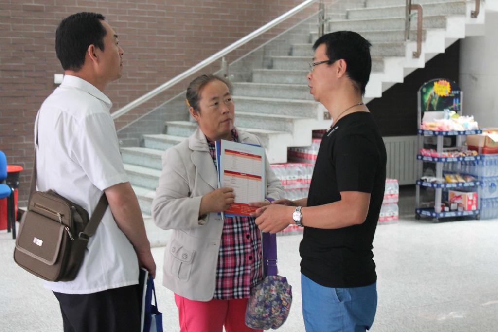 太阳成集团tyc122ccvip官网入口樊国梁副教授带领第十届团总支员工会成员与考生和家长面对面交流。樊国梁老师以及各部门部长就公司专业设置、公司人才培养方案及培养模式等向众多考生和家长进行了介绍,并集中介绍了公司近几年的招生情况及录取分数线变化情况,也为家长分析了公司专业就业前景以及考研、保研等热点问题。同时,为了增进考生对太阳成集团tyc122ccvip官网入口的了解,负责人还为考生及家长分发了“太阳成集团tyc122ccvip官网入口本科专业介绍”宣传单。