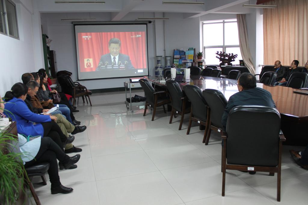 全体党员聆听习近平总书记向大会作的主题为“不忘初心,牢记使命,高举中国特色社会主义伟大旗帜,决胜全面建成小康社会,夺取新时代中国特色社会主义伟大胜利,为实现中华民族伟大复兴的中国梦不懈奋斗”的报告。为十九大的胜利召开欢欣鼓舞,并在收看结束后纷纷发表感言,畅谈对党的十九大报告的感想与体会,整个活动的气氛积极热烈。