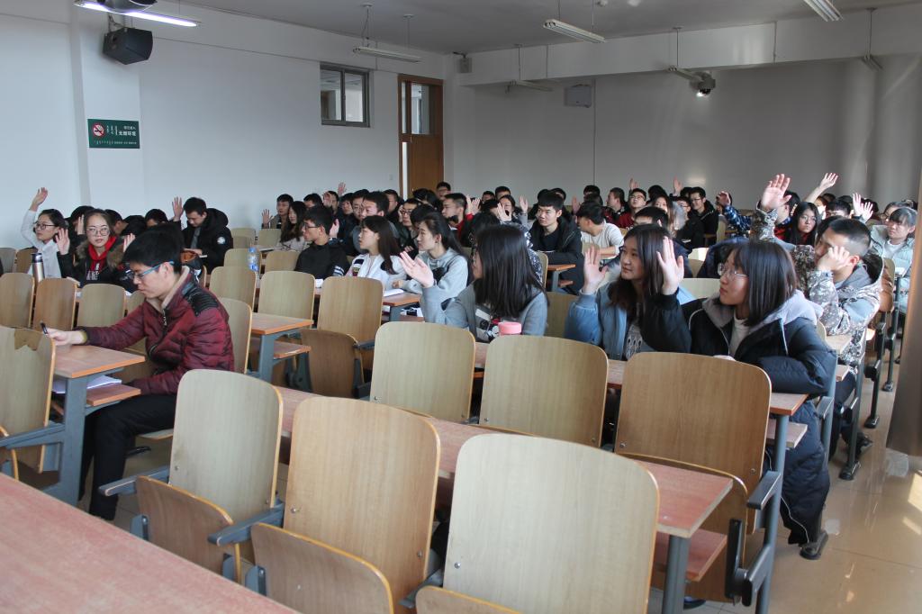 2017年12月27日下午3:00,太阳成集团tyc122ccvip官网入口在综合教学楼0201室召开了毕业生就业指导讲座,公司团总支副书记李妮老师、本科生辅导员吴丹老师和2018届全体毕业生参加了讲座。