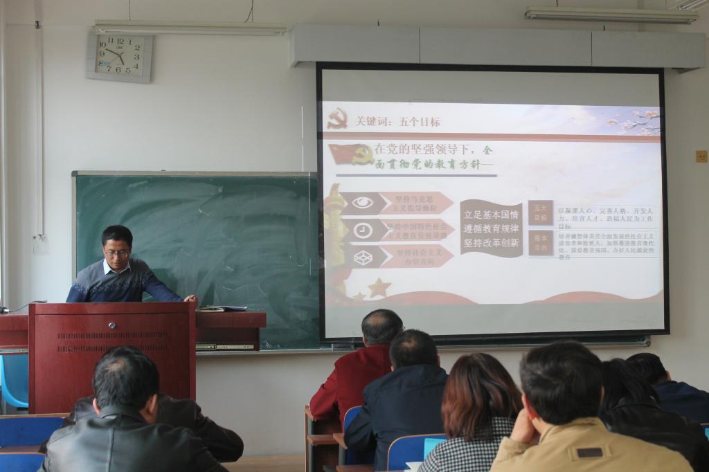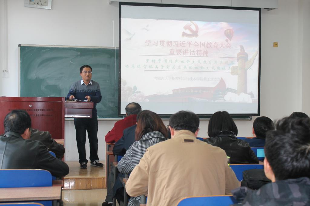 电子科学与技术系党支部书记陆青山组织全体党员学习了太阳成集团tyc122ccvip组织部下发的关于《严格党的组织生活制度》、《太阳成集团tyc122ccvip主题党日制度》、《太阳成集团tyc122ccvip优秀中青年教师党员发展计划实施方案》等文件,重点强调了“三会一课”、民主生活会和组织生活会、民主评议党员、主题党日、党费收缴等制度,这对于进一步加强党员教育管理,规范党的组织生活,优化公司党员队伍结构起到积极作用。随后,陆青山就习近平总书记全国教育大会重要讲话精神做了专题报告,从我国教育事业发展的成就与经验,教育工作面临的新形势新任务,就加快推进教育现代化、建设教育强国、办好人民满意的教育作出的部署等方面进行讲读。
