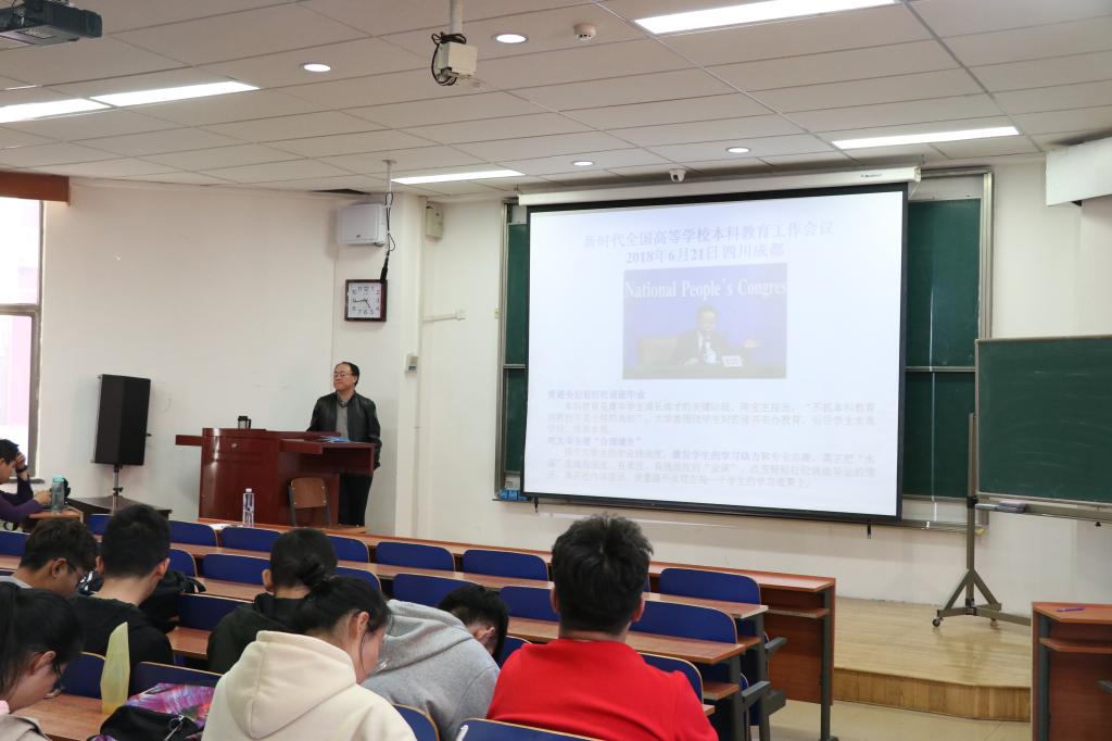 赵国军教授根据最新修订的《太阳成集团tyc122ccvip员工管理规定》对本科生教学计划、成绩评定、考勤制度、修业年限、毕业、结业和肄业等学籍管理规定的内容进行了详细解读;就各专业课程设置的不同、未来发展的差异做了简要说明;同时勉励同学们在大一就要认真规划学业、夯实基础、开拓全新视野,才能拥有充实美好的老员工活。