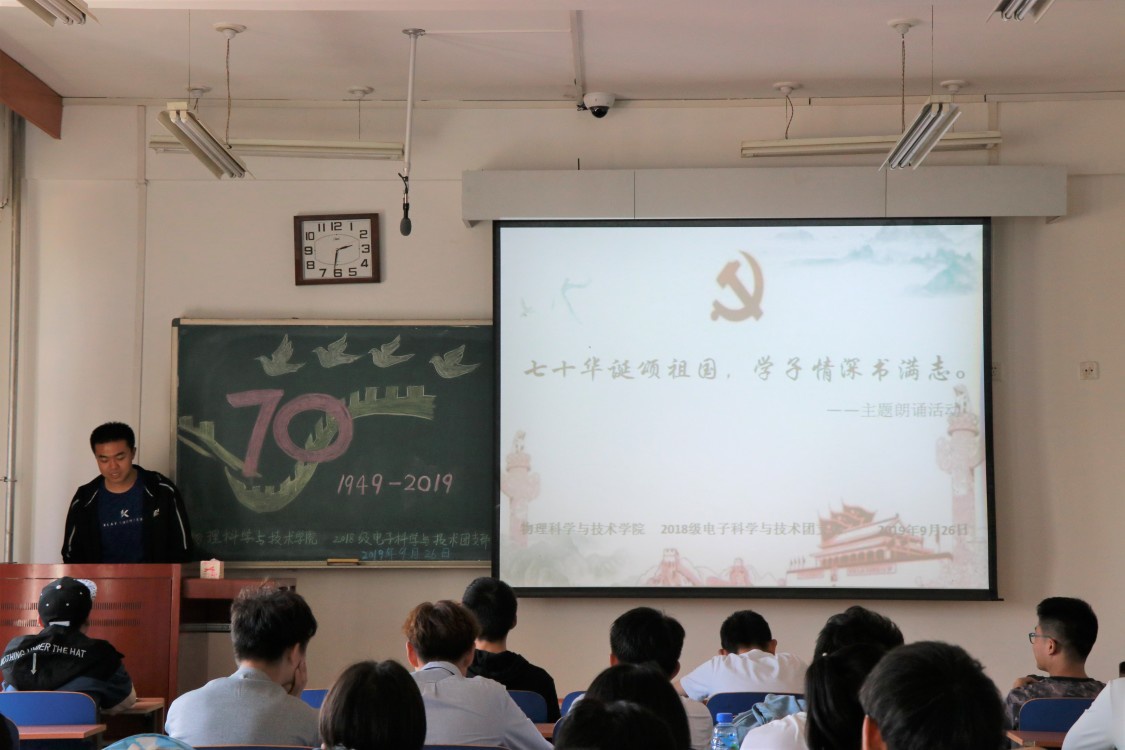 2017级电子科学与技术团支部以宿舍为单位的诗歌朗诵表达了对祖国的热爱,同时也展现出当代老员工的精神风貌。2018级应用物理学团支部带领全班同学高唱《歌唱祖国》,在慷慨激昂的歌声中,在祖国70华诞的热烈氛围中,同学们都表达了对祖国母亲的祝福,希望祖国母亲更加强大,在70华诞之际祝祖国母亲更加繁荣昌盛!