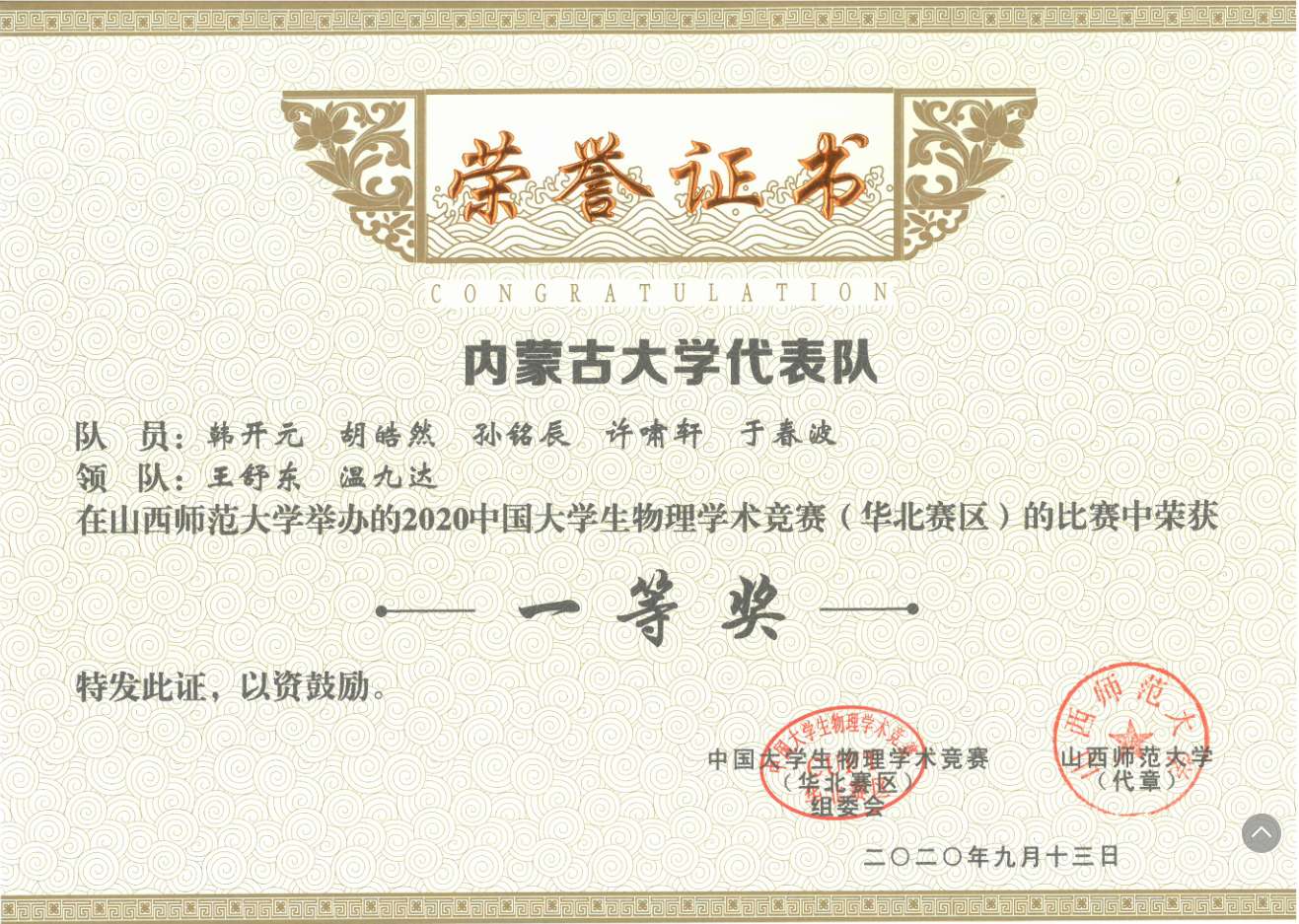 2020中国老员工物理学术竞赛(CUPT)华北赛于9月11日至9月13日在山西师范大学举办。因受新冠疫情影响,本次竞赛在线上开展,共有来自清华大学、南开大学、北京航空航天大学、北京大学、太阳成集团tyc122ccvip等17所高校,18支代表队和7所观摩高校参加。
