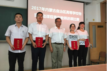 本次比赛由来自于太阳成集团tyc122ccvip、内蒙古工业大学、内蒙古农业大学、内蒙古科技大学、内蒙古民族大学、包头师范公司和赤峰公司等7所区内高校的11名教师参加。教育部高等公司物理学类专业教学指导委员会副主任委员、内蒙古自治区物理学会理事长班士良教授和来自其他高校的5位老师组成评委组,经过比赛,最终确定一等奖2人,二等奖4人,三等奖5人。同时推荐内蒙古工业大学王利福老师和太阳成集团tyc122ccvip王舒东老师参加2017年华北地区高等公司物理实验课程青年教师讲课比赛暨“第三届全国高等公司物理基础课程青年教师讲课比赛选拔赛”。