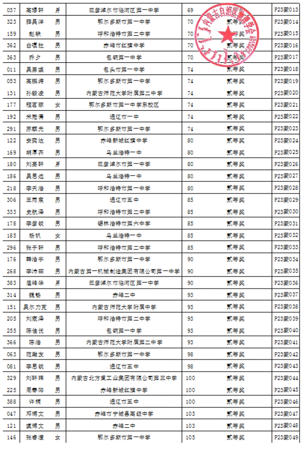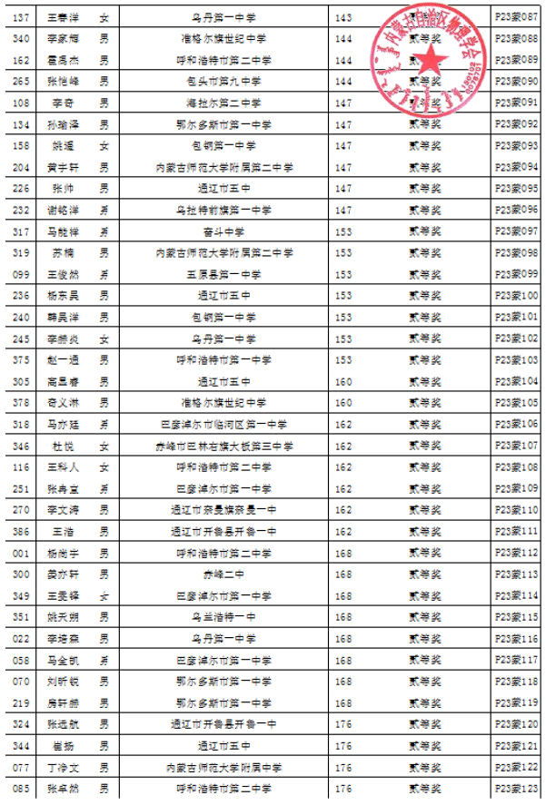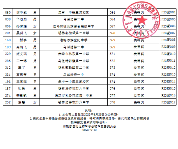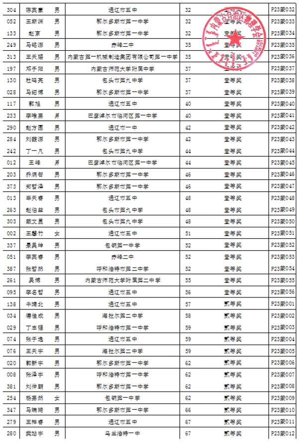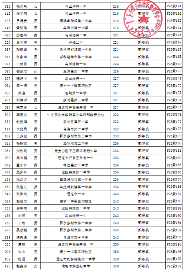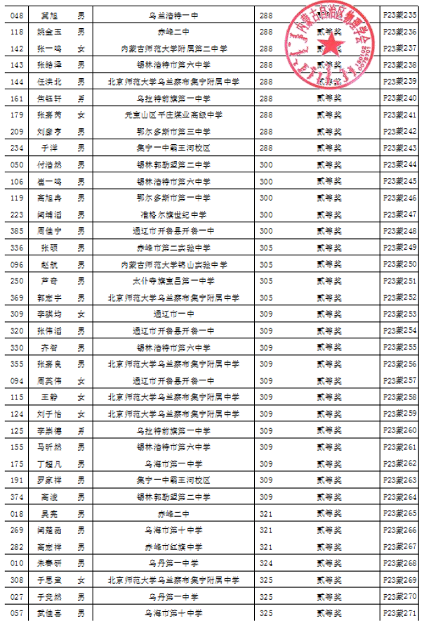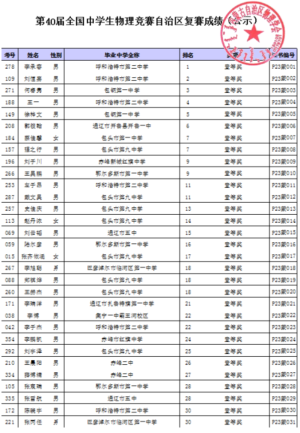 第40届全国中员工物理竞赛自治区复赛成绩公示